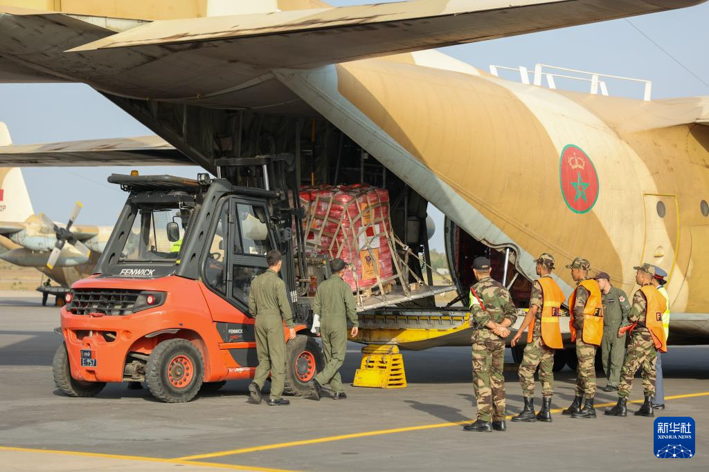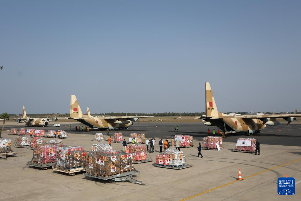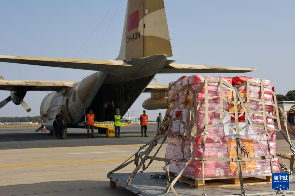 当晚,援助物资在位于摩洛哥首都拉巴特以北城市塞拉的皇家空军第一基地进行装运。该基地一名负责人说,动用了4架C-130H军用运输机和一架民航货机运输物资。