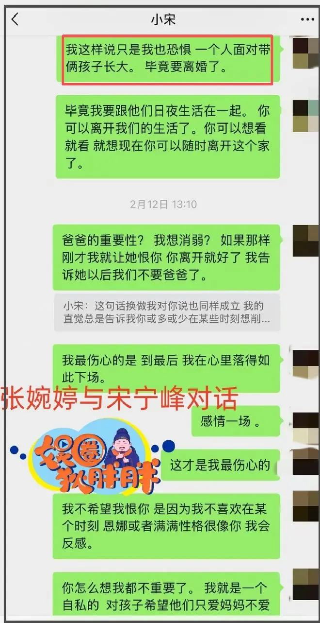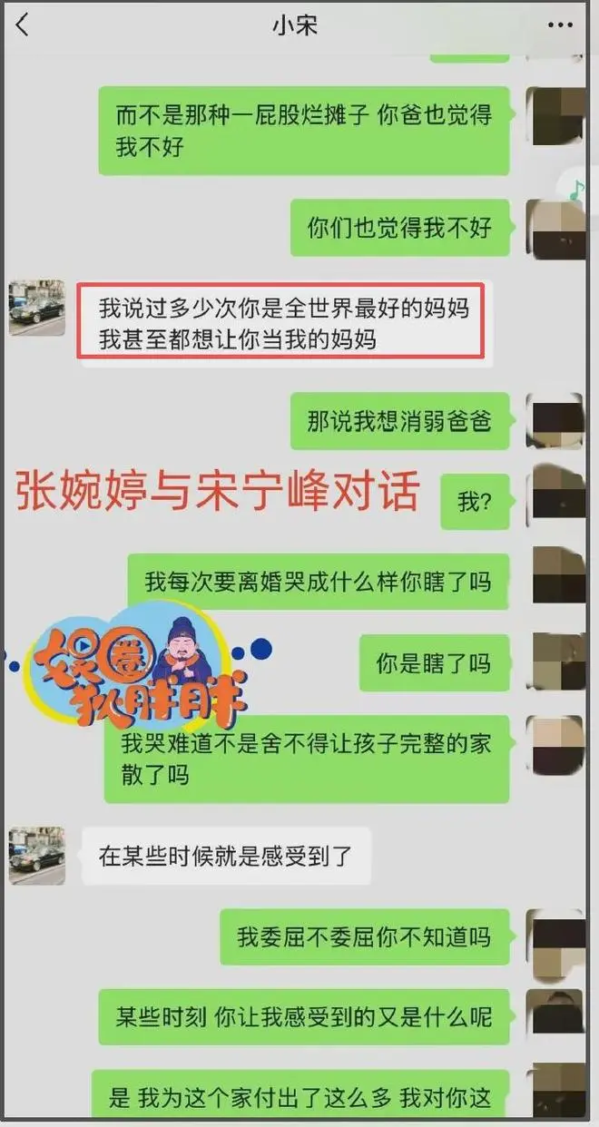 事情败露后,他没有丝毫愧疚,反而在 2026 年 2 月 12 日,主动向张婉婷提出离婚。面对张婉婷的崩溃、哭诉,细数独自带两个孩子的艰难,诉说对完整家庭的不舍,宋宁峰全程冷漠,要么敷衍几句,要么说些 “你是全世界最好的妈妈,我甚至都想让你当我的妈妈” 这种混账话。看似是夸奖,实则是最自私的甩锅 —— 他把所有家庭责任、育儿压力全推给张婉婷,自己只想做一个不用承担任何压力、随时可以抽身的 “巨婴”。