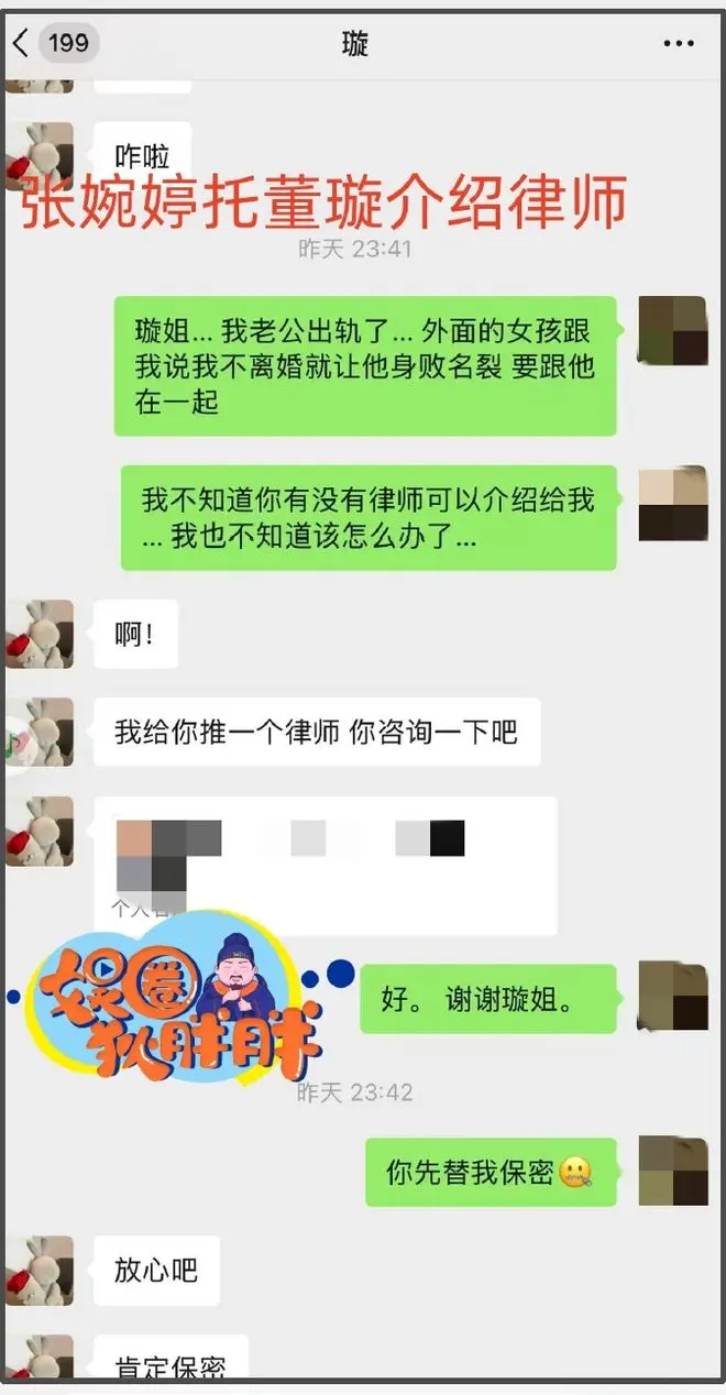 Q 女士直接找到张婉婷,放话挑衅:“不离婚就让宋宁峰身败名裂,他必须和我在一起”。一边是丈夫的背叛,一边是第三者的咄咄逼人,张婉婷终于被彻底击垮。走投无路的她,深夜哭着联系好友董璇,哽咽着求助:“我老公出轨了,你有没有靠谱的离婚律师可以介绍给我?” 她反复叮嘱董璇 “一定要替我保密”,那一刻的无助、绝望、心碎,隔着屏幕都能让人感同身受。