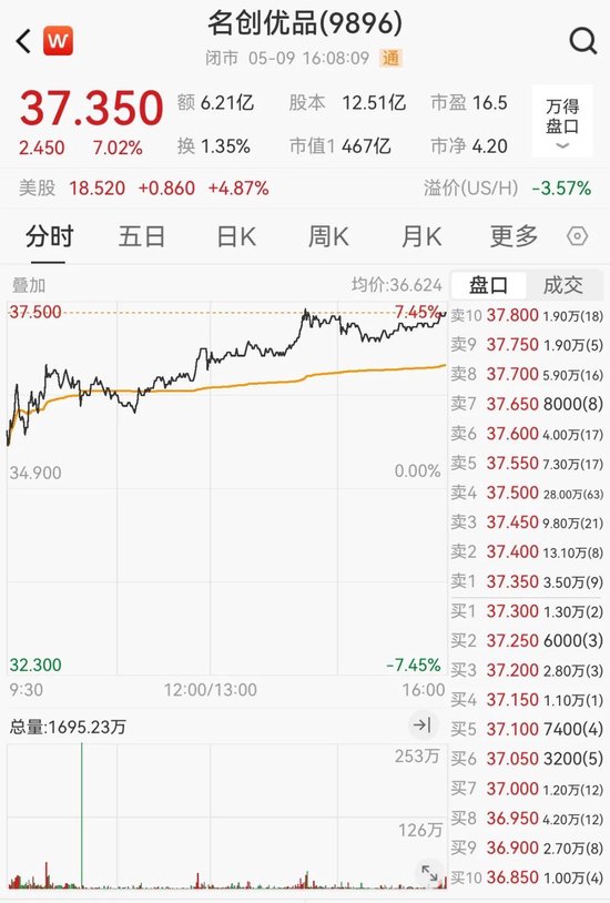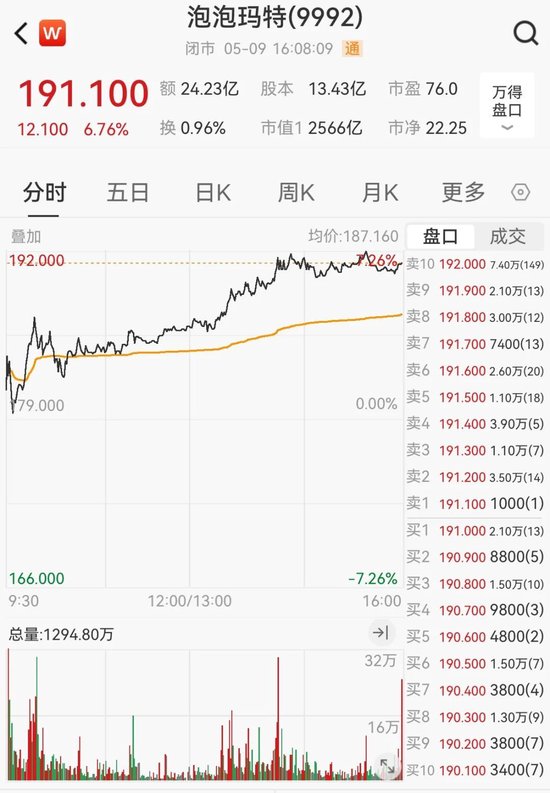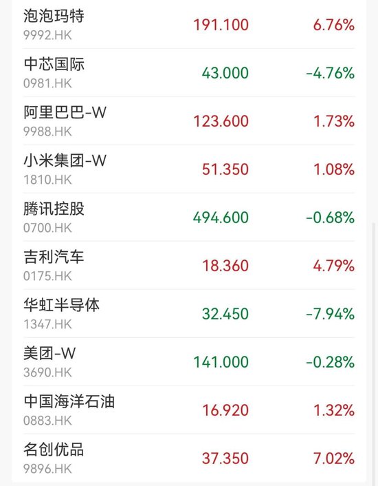 5月9日,港股部分消费股上涨,表现亮眼。名创优品涨超7%,泡泡玛特涨超6%,上美股份涨近6%,茶百道涨超2%。