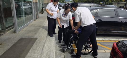 十几分钟后,业务顺利办理完成。客户握着小孙的手,眼眶微微泛红:“姑娘,太谢谢你了!来之前我还一直担心,自己一个人办业务会不方便,没想到你这么细心又热心,真是帮了我大忙了!” 小孙笑着摆摆手:“这都是我们应该做的,您别客气。” 随后,她又推着轮椅来到大厅门口,仔细检查了门口的地面,确认没有碎石或障碍物后,才慢慢将轮椅推下斜坡,还特意叮嘱:“路上一定要注意安全,要是后续有业务问题,随时给我们打电话就行。”